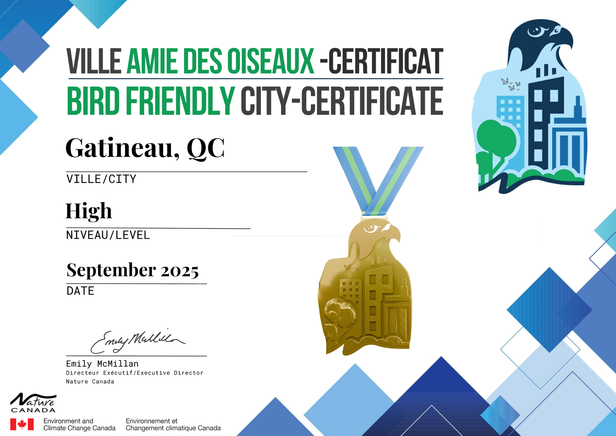 Communiqué de presse et détails concernant l'accréditation de Gatineau comme Ville amie des oiseaux